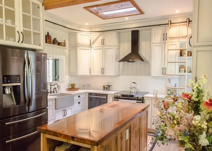 Si les clients souhaitent cuisiner eux-mêmes, il y a une cuisine complète comprenant un micro-ondes et un réfrigérateur. Vous pourrez également profiter de la commodité d'avoir à votre disposition une cafetière/théière. Les clients peuvent facilement se rendre à l'aéroport international John C. Munro d'Hamilton, situé à 35 km des propriétés Luxury Waterfront Fairytale Themed Home - Carmen Elisabeth.